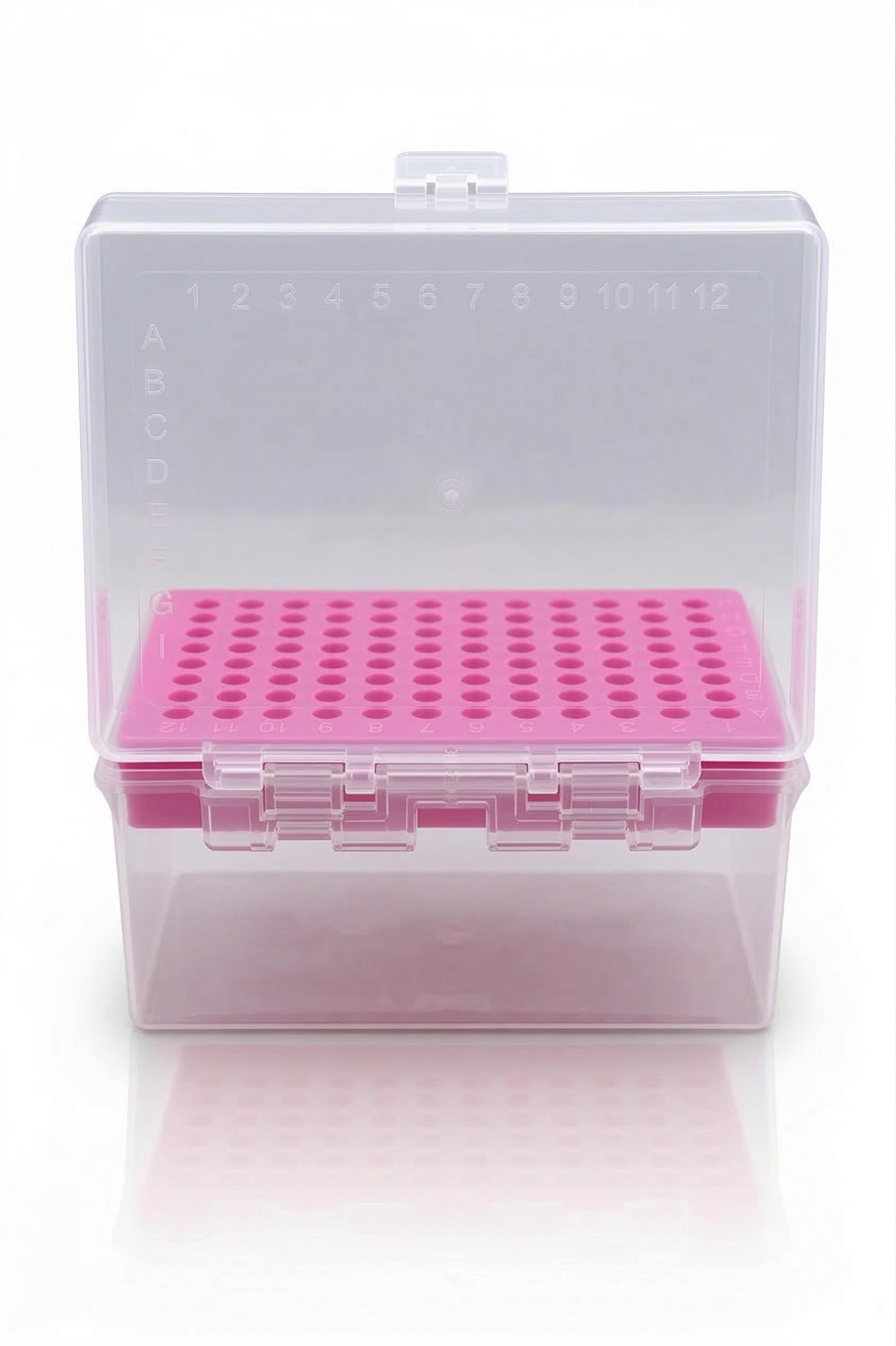 Description : Boîte avec couvercle à charnières + plateau de 96 emplacements (8x12) pour cône jaune/blanc.