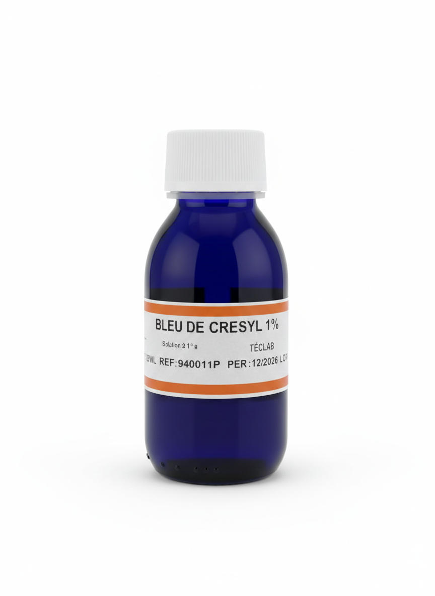 Le Bleu de Crésyl Brillant à 1% est un colorant vital utilisé principalement en hématologie pour la numération et l'identification des réticulocytes (jeunes globules rouges). Contrairement aux colorations classiques sur frottis fixés, il s'utilise sur du sang non fixé (état frais). Son action consiste à faire précipiter les résidus d'ARN et d'organites cellulaires sous forme d'un réseau granulo-filamenteux bleu foncé à l'intérieur des érythrocytes immatures. Cette technique est indispensable pour évaluer l'activité érythropoïétique de la moelle osseuse et diagnostiquer le caractère régénératif ou non d'une anémie.