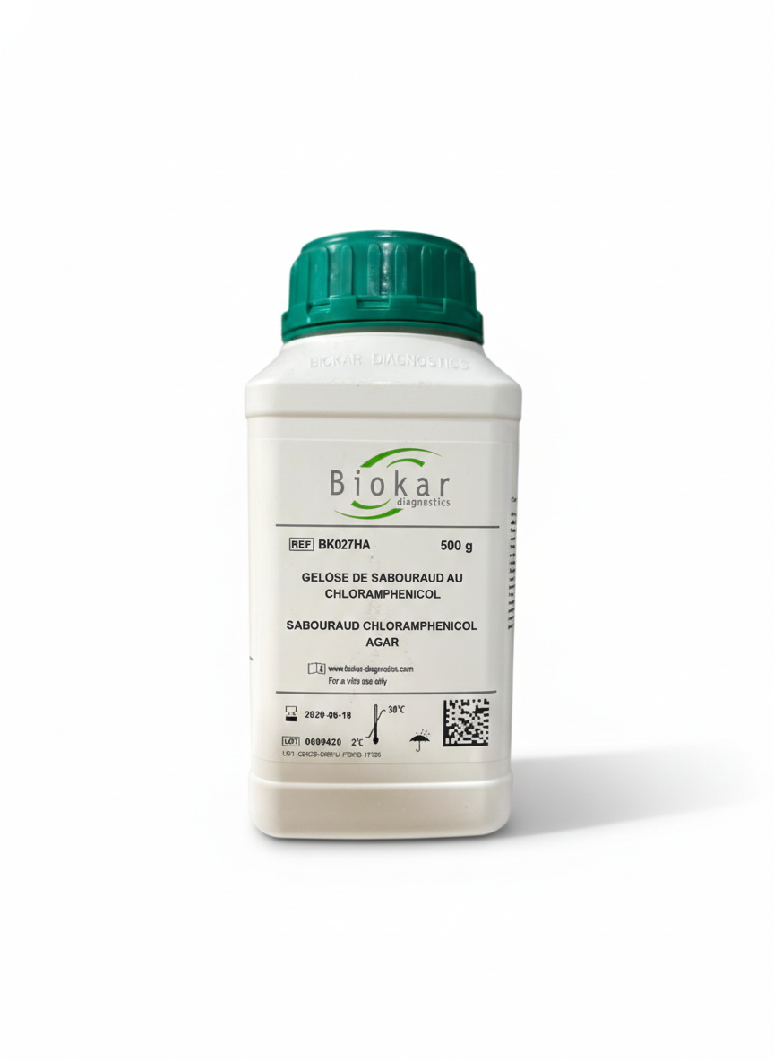 La Gélose Sabouraud est un milieu sélectif conçu pour la culture des champignons phytopathogènes, des dermatophytes et des levures (comme Candida albicans). Sa formulation repose sur une concentration élevée en glucose (source d'énergie) et un pH légèrement acide qui favorise le développement des champignons.