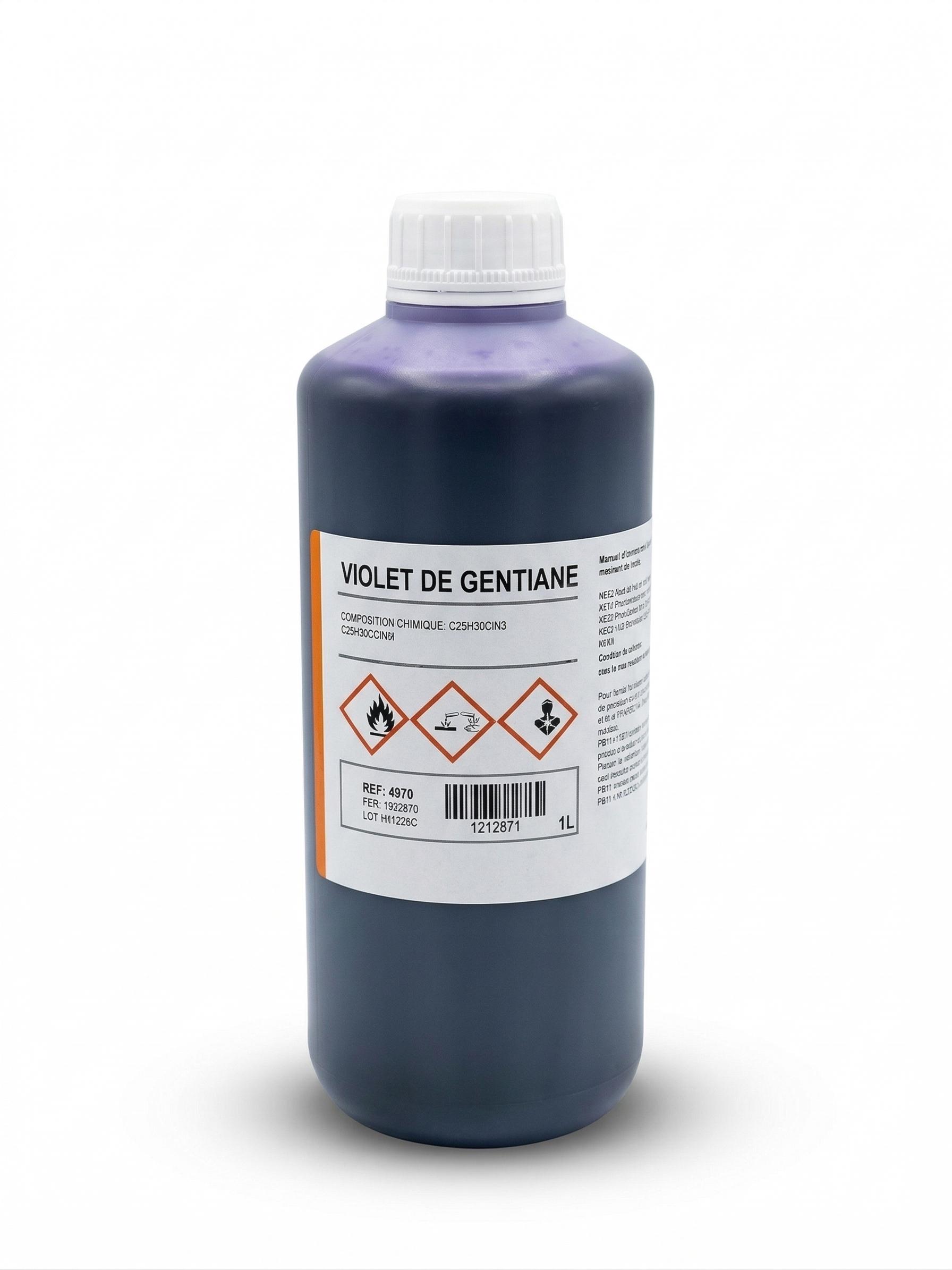 Il s’agit d’une solution de violet de gentiane (cristal violet) associée à du phénol, renforçant son action antiseptique. Ce produit est couramment utilisé dans la coloration de Gram, où il agit comme colorant primaire permettant de différencier les bactéries Gram positives et Gram négatives.