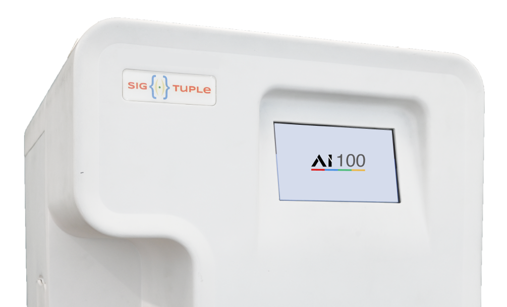 Le système AI100 utilise la robotique et l’intelligence artificielle pour automatiser la microscopie manuelle. Les lames sont numérisées, les images analysées par des algorithmes d’IA qui identifient et classifient les cellules, puis un biologiste valide les résultats.
