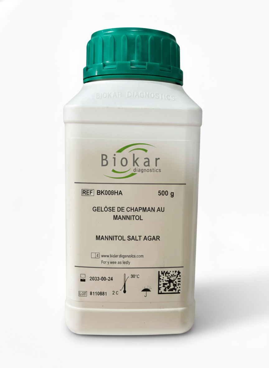 La Gélose Chapman, également connue sous le nom de Mannitol Salt Agar (MSA), s'impose comme le standard incontournable pour les laboratoires de microbiologie exigeants. Ce milieu de culture sélectif et différentiel est spécifiquement formulé pour l'isolement, le dénombrement et l'identification présomptive des staphylocoques pathogènes, en particulier le Staphylococcus aureus. Grâce à sa composition équilibrée, elle permet de filtrer efficacement la flore d'accompagnement tout en offrant une lecture visuelle immédiate du métabolisme bactérien.
