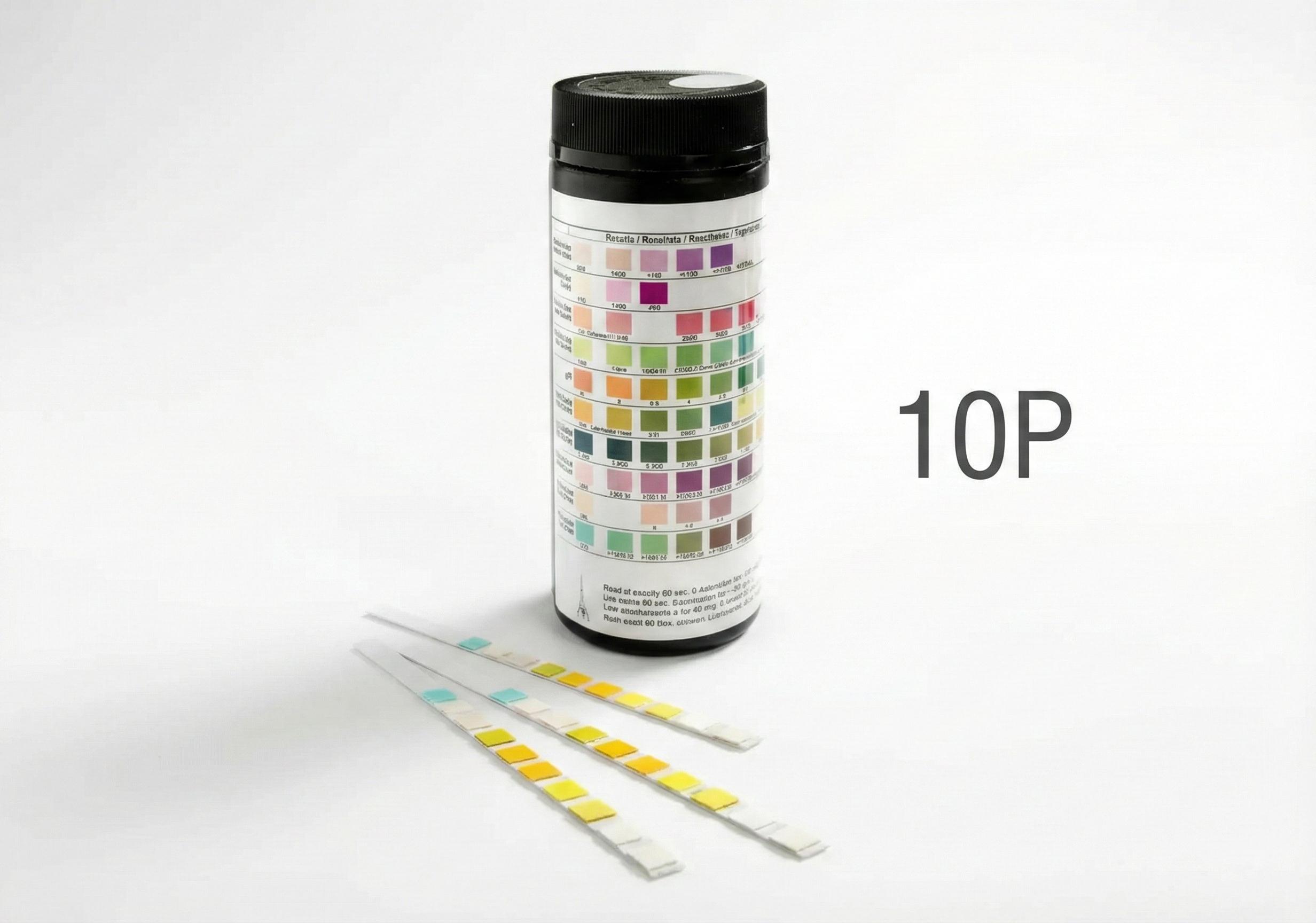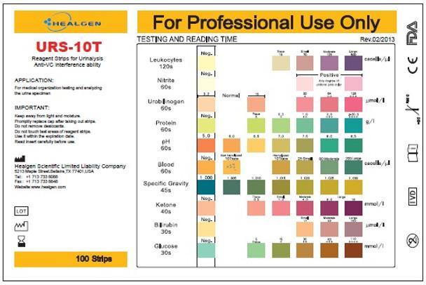 Les résultats des tests peuvent fournir des informations utiles sur le métabolisme des glucides (diabète), la fonction rénale, l'équilibre acido-basique, la bactériurie, la recherche de sang occulte, l'hyperleucocytémie (infection) et d'autres problèmes de santé. Les bandelettes sont prêtes à l'emploi dès leur retrait du flacon et la bandelette réactive est jetable. Les bandelettes réactives URS10 sont conditionnées en flacon de 100 tests et ont une durée de conservation d'environ un (1) an. Chaque flacon est accompagné d'un résumé complet des propriétés chimiques et biologiques du test, ainsi que d'un nuancier pour un diagnostic visuel rapide.