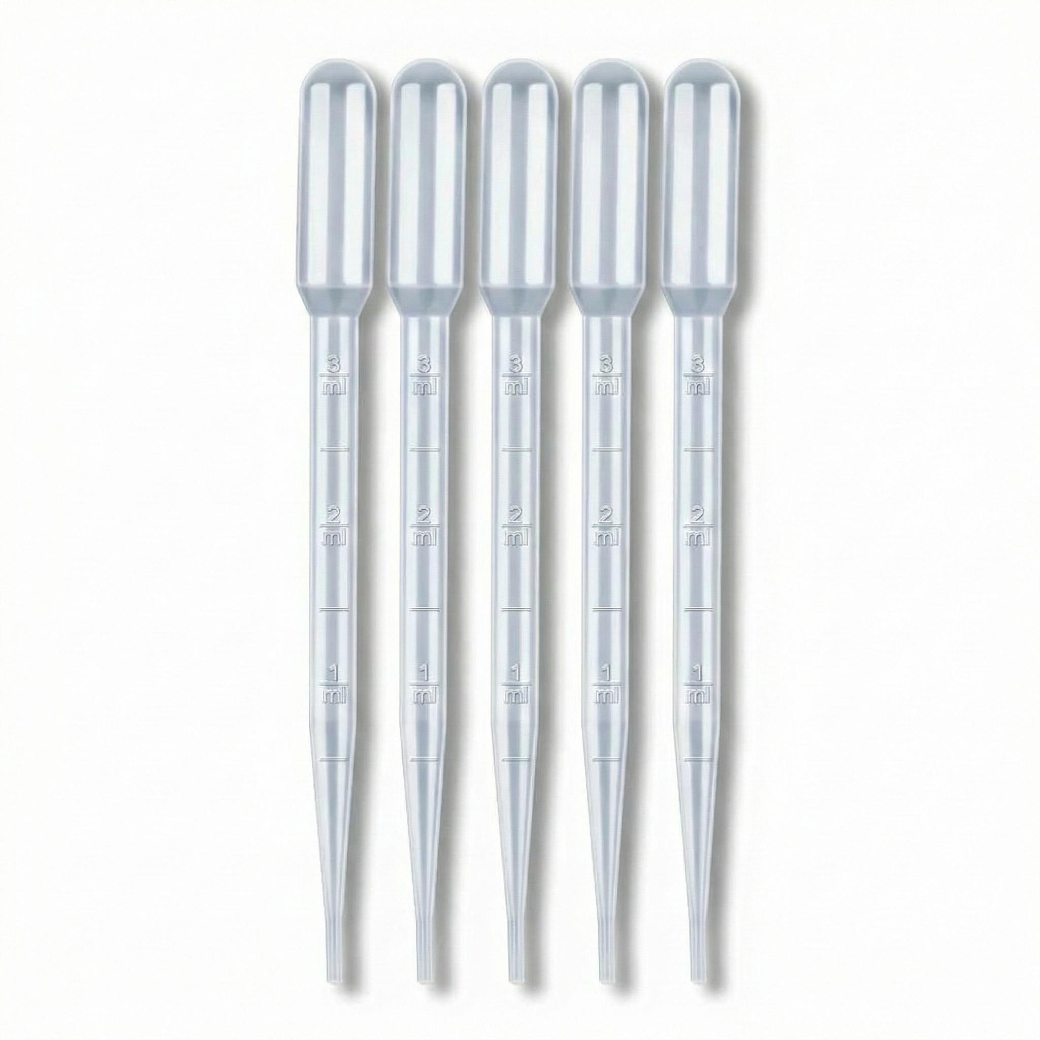 Pipettes à usage unique dotées d'une pompe d'aspiration et de graduations. La petite pointe permet le dosage précis de l'échantillon.