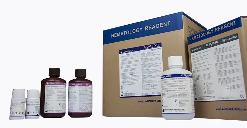 Labnovation offre une gamme complète de régents d'hématologie tels que le diluant, les réactifs lyquants et les nettoyants pour la majorité des analyseurs d'hématologie sur le marché, y compris des modèles différentiels en 3 parties et des modèles différentiels à 5 parties.